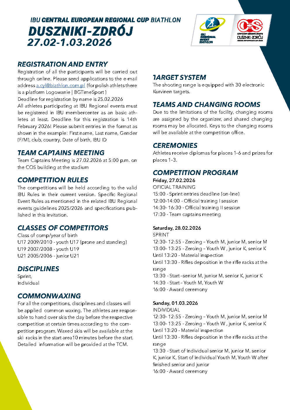 Komunikat zawodów - Puchar Europy Centralnej